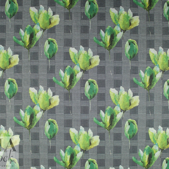 houndstooth check and tulips ponte - greens 1.375 yds