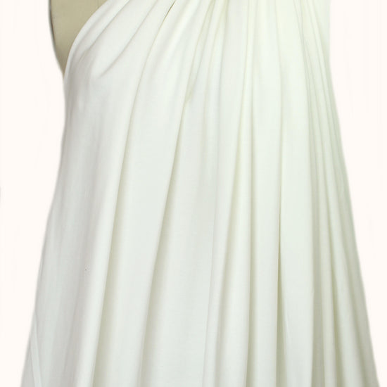 This beautiful combed cotton interlock knit is availbe at a bargain price! It is smooth and soft with a cottony drape, opaque and a perfect weight for tees, tops, tunics, loungewear and activewear. 60% stretch in the width, about 25% in the length. The color is creamy white. Test first: cold water wash and tumble dry low. 2.5 yds.