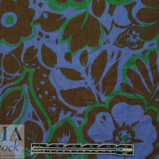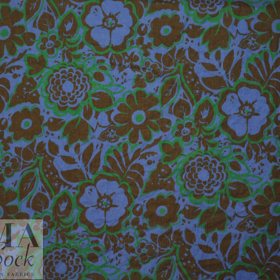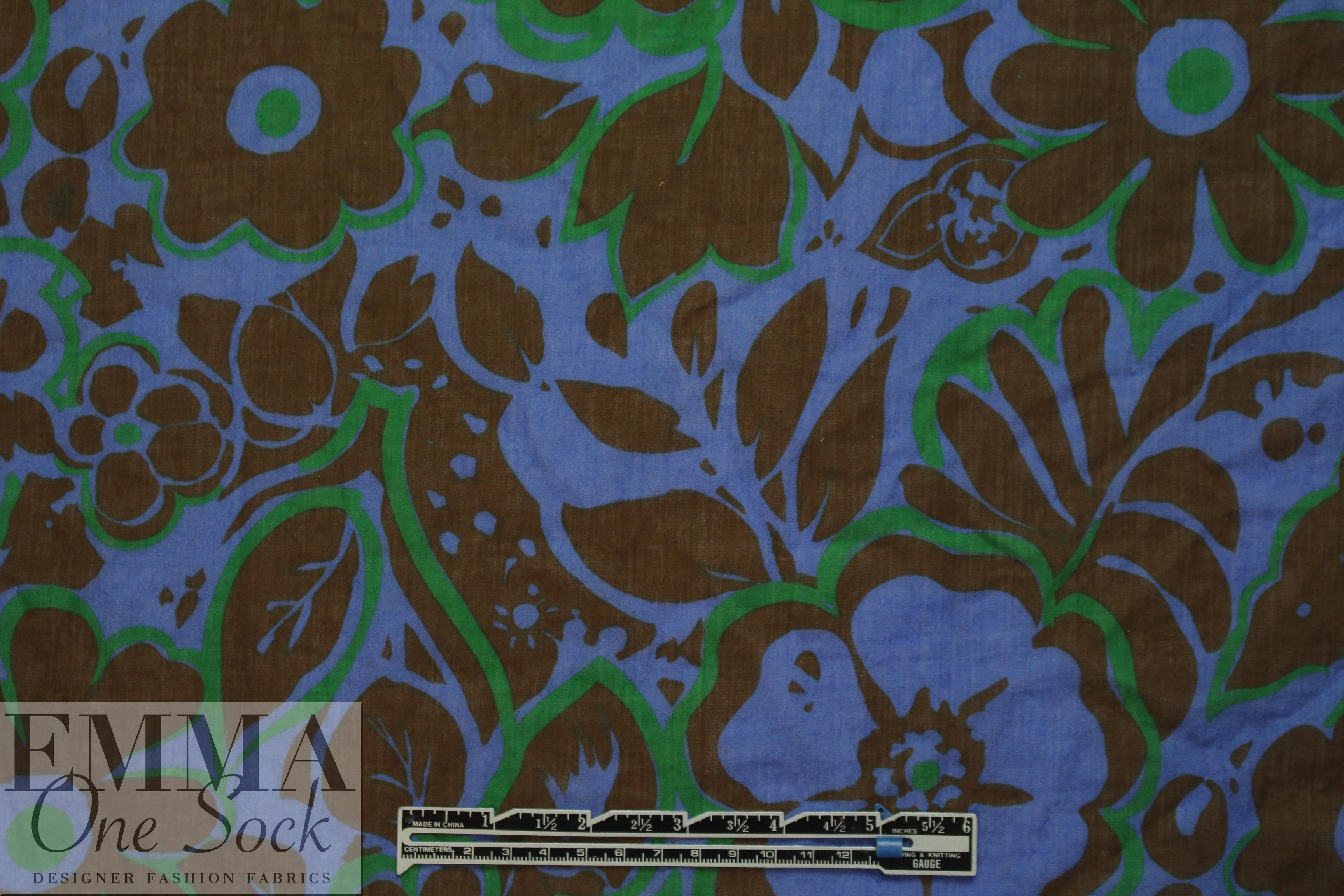 NY designer blue/kelly/nutmeg floral cotton stretch voile