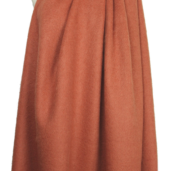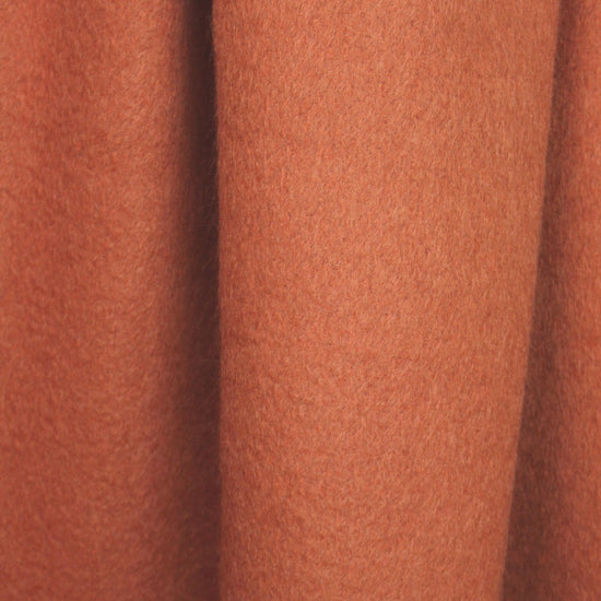From a NY designer, this is a lovely wool blend woven coating, medium weight with a soft drape that has some body. The face has a short-hair, silky/furry texture and the reverse is more of a flat weave. The color is rusty orange (PANTONE 17-1347-ish) and this fabric does have a nap. It has an exquisitely soft hand and is not weighty. Perfect for a fall/winter coat or jacket. Dry cleaning recommended. LAST PIECE, 2.3 yds.