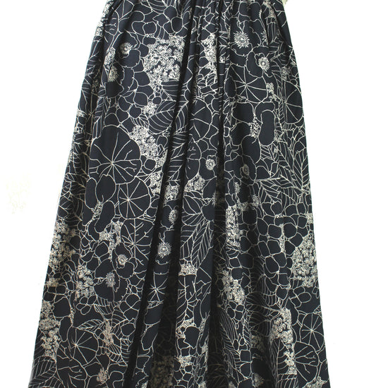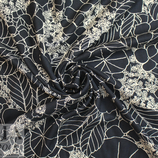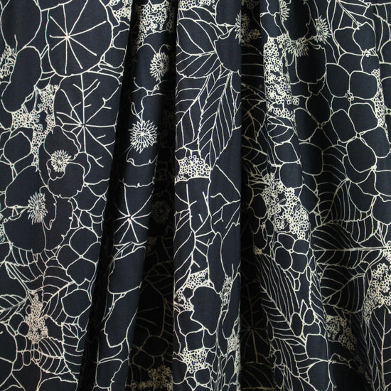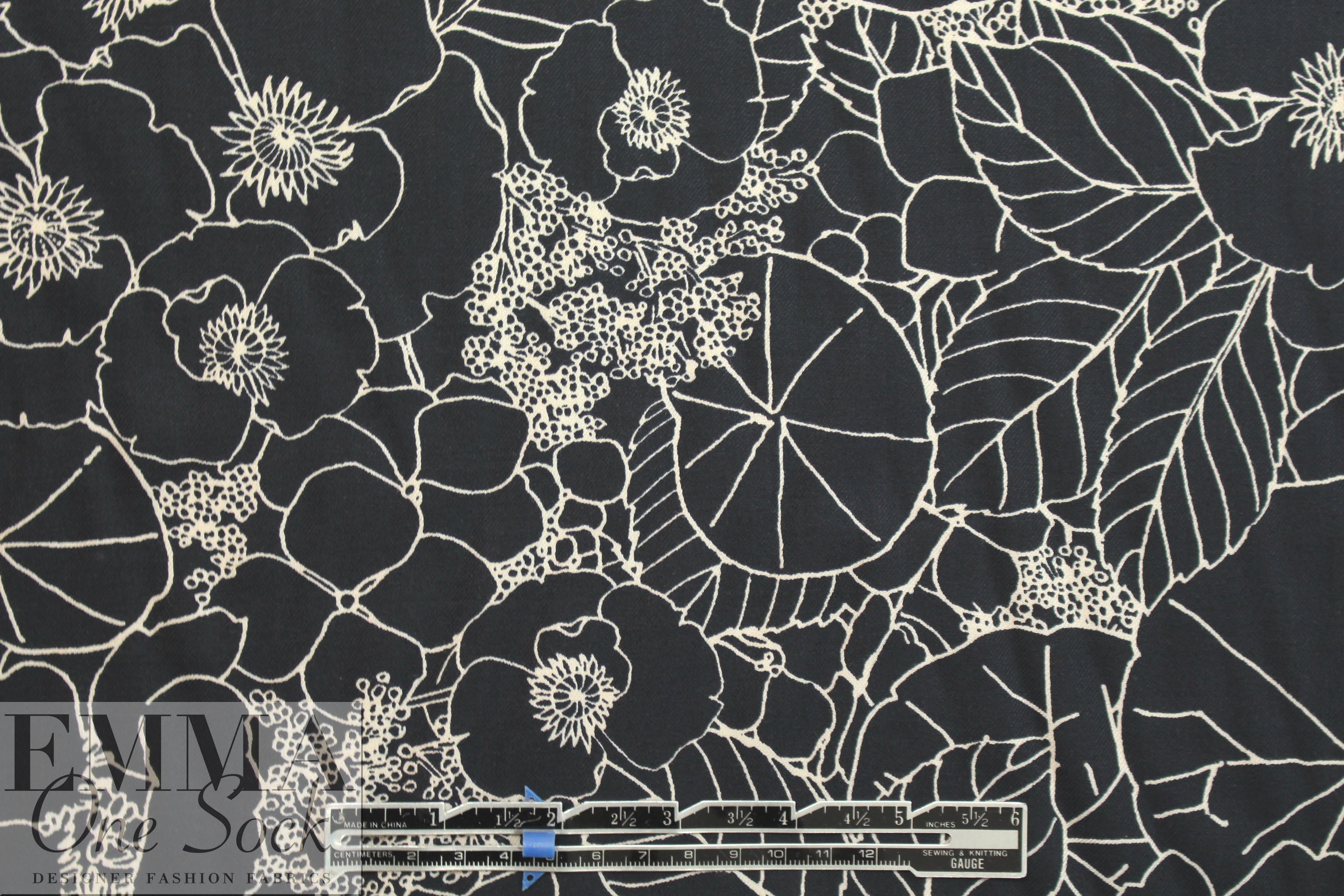 From Italy, this is a gorgeous quality printed drapey viscose twill weave. The deco floral silhouette design has a 23.5" repeat, and the colors are blue-black and off white. It is lightweight yet opaque, with a soft drape, a perfect choice for blouse, top, tunic, dress or skirt, etc. Dry cleaning recommended. Test first if you wish to hand wash and hang or lay flat to dry. 1.875 yds.