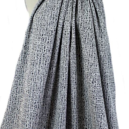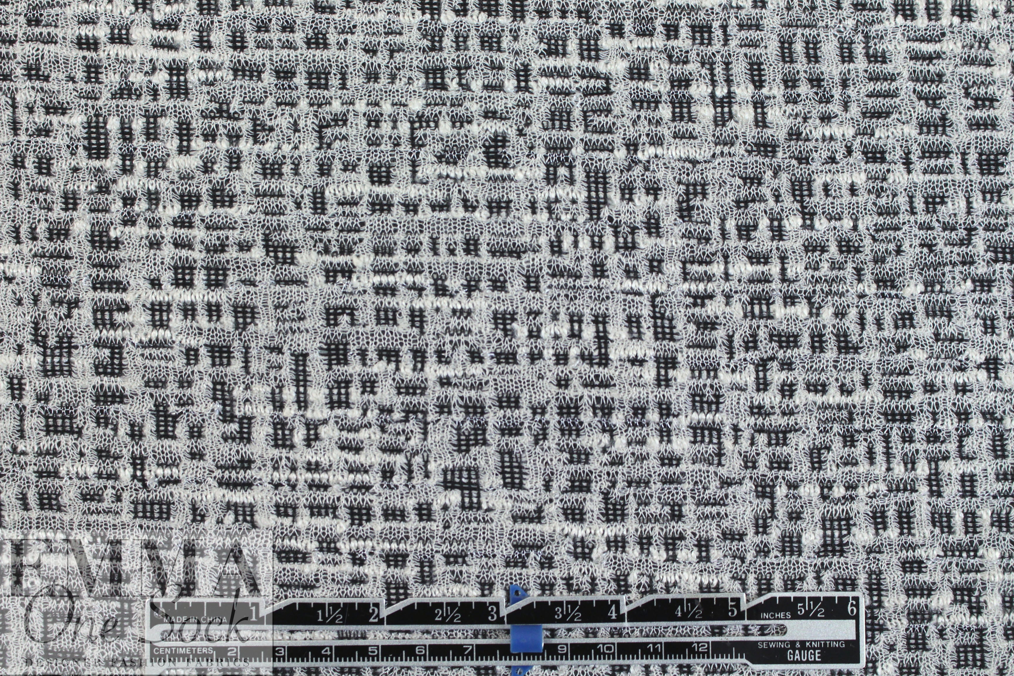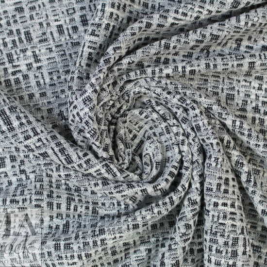 From a NY designer, this is an eye-catching and very cool medium-light weight yarn dyed novelty sweater knit with a textured pattern that resembles a crosshatch in black and white. The reverse is a flatter solid black, and while it is not really meant to be seen it could provide nice contrast as binding or trim. It has about 10% widthwise stretch, and is opaque with a soft drape. It is perfect for tees, tops, tunics, cardigans, pullovers, etc. Hand wash inside out, in cold water and lay flat to dry. LAST PIECE, 1.75 yds.