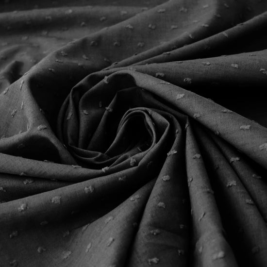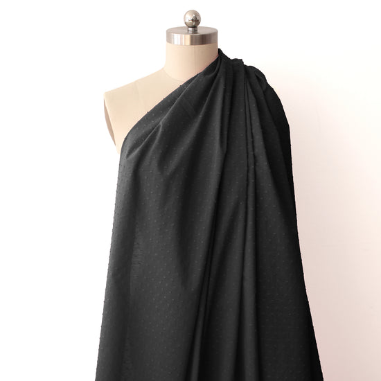"Swiss dot" clipped weave shirting - black